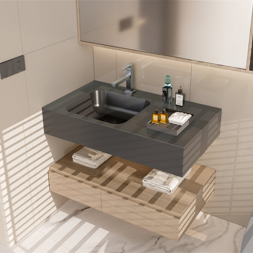 Floating Bathroom Sink SWBS03GR is crafted from high-quality solid surface material, meticulously designed to create a non-porous surface that eff...